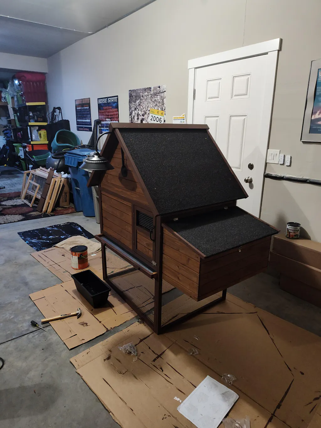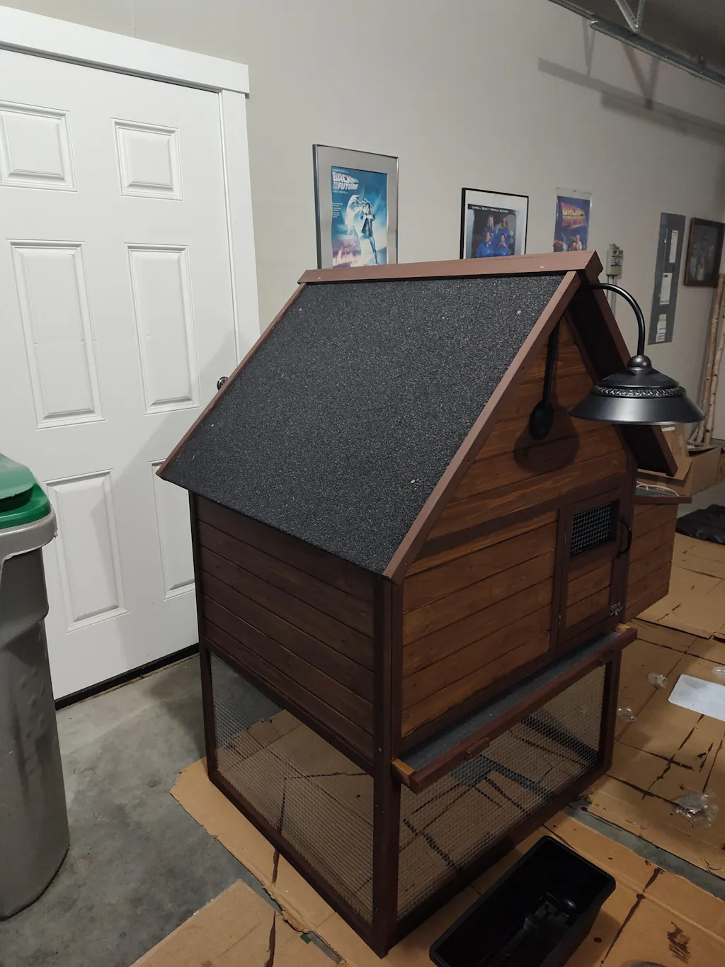 Kona House is: 46""x32" which includes a Double nesting box and long roosting bars.